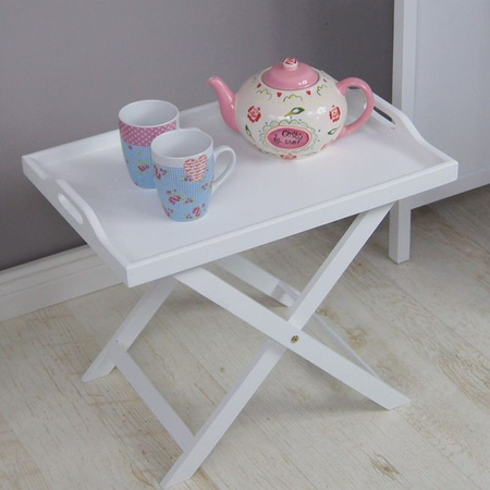 Składany, drewniany stolik ze zdejmowanym blatem w formie tacy. Idealny pomocnik - barek. Dół stolika jest składany.